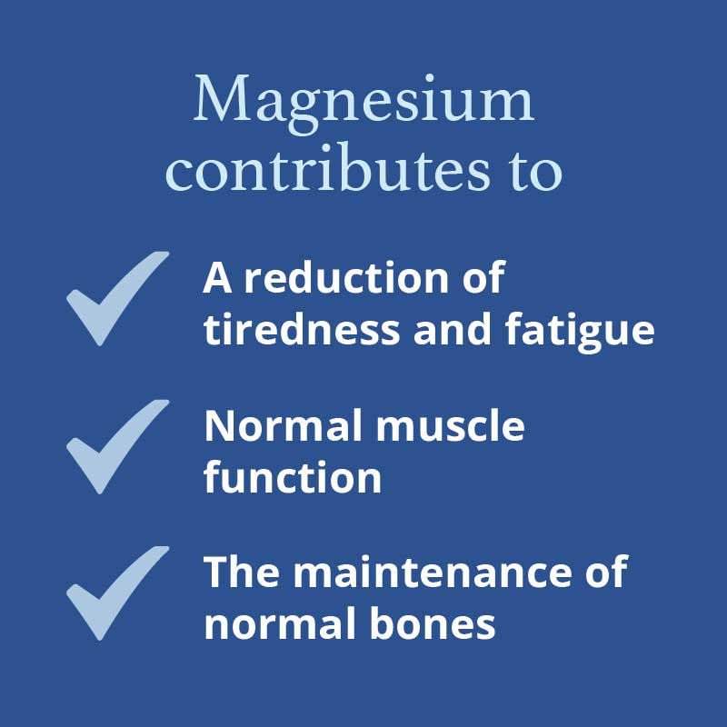 Magnesium is an essential mineral that plays a key role in many physiological functions throughout the body.* It supports healthy muscle and nerve activity, contributes to the body’s energy metabolism, and is important for maintaining strong bones and teeth.* Adequate magnesium intake is also associated with overall cellular health and normal enzymatic function.*