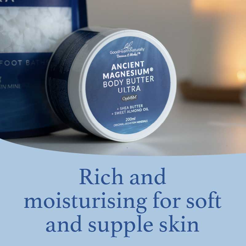 - Ancient Magnesium ™ Body Butter Ultra includes OptiMSM® (methylsulfonylmethane), a source of organic sulfur commonly used in cosmetic formulations to support skin texture.*