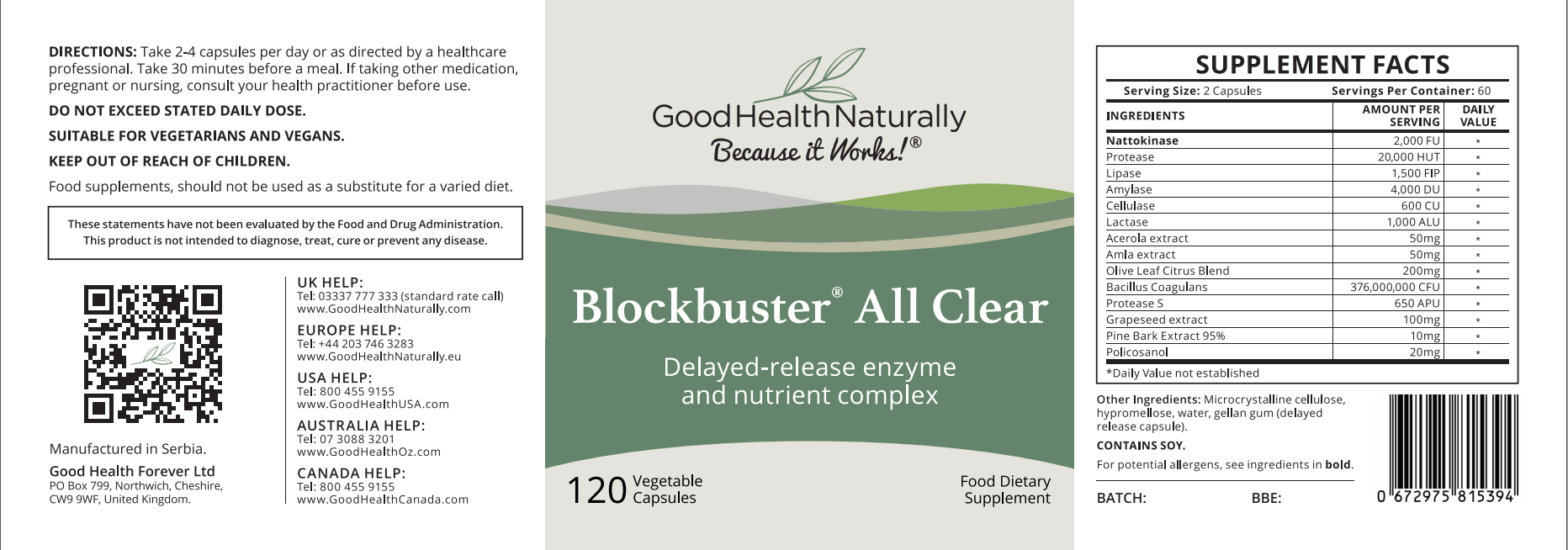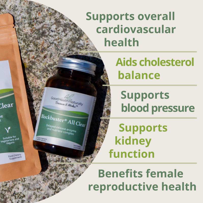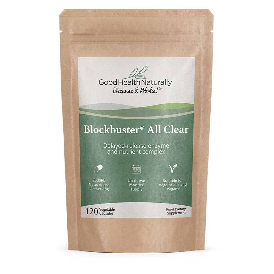 Blockbuster AllClear contains serrapeptase and nattokinase, two systemic enzymes. The formula also includes a broad-spectrum digestive enzyme complex.*