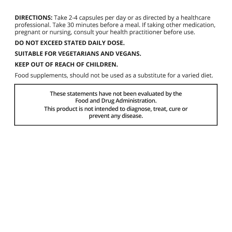 - Designed for adults. Take 2-4 capsules per day 30 minutes before a meal.*