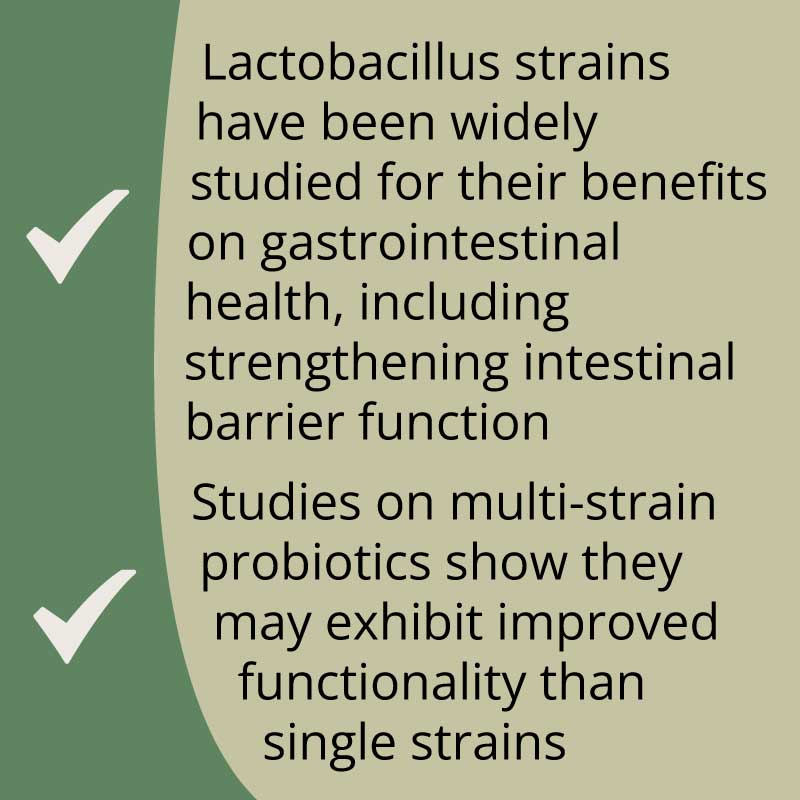 - Includes a blend of Lactobacillus and Bifidobacterium species to help support gut microflora balance.