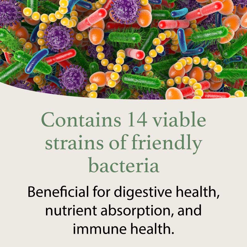 - Probiotic14â„¢ is formulated with 14 distinct strains of beneficial bacteria.*