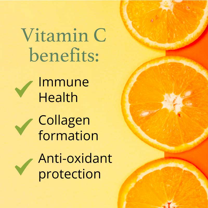 - Collagen Formation: Vitamin C contributes to normal collagen production, which supports healthy skin, cartilage, bones, and blood vessels.*
