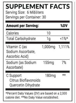 PureC+™ is a high-potency liquid supplement combining Vitamin C with Quercetin for comprehensive antioxidant and wellness support. Each serving provides a powerful dose of Vitamin C, an essential nutrient that plays a key role in supporting a healthy immune system and aiding in the production of collagen, a protein vital for skin, joints, and connective tissues.*